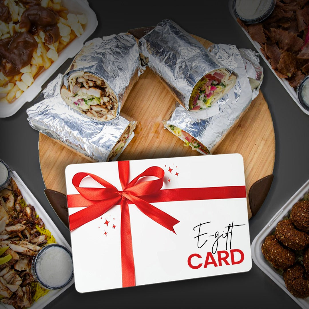 Gift Card at Nebo’s Falafel & Donair – Share the authentic taste of Middle Eastern cuisine with your loved ones in Saskatoon!